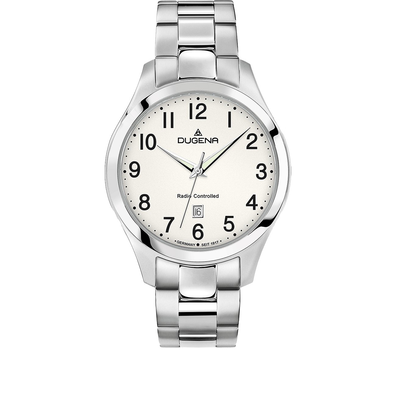 Mit dieser Herrenuhr von DUGENA holen Sie sich einen besonders klassischen Zeitmesser ans Handgelenk. Die mit einem robusten Edelstahl-Gehäuse und dreireihigen Armband ausgestattete Uhr ist geprägt von einem ausdrucksstarken Design. Dieses wird perfekt ergänzt durch das schlicht gehaltene Zifferblatt in Weiß mit Leuchtzeigern und Datumsanzeige. Wir meinen: Diese Uhr ist zu jeder Gelegenheit ein zuverlässiger und optisch ansprechender Begleiter.