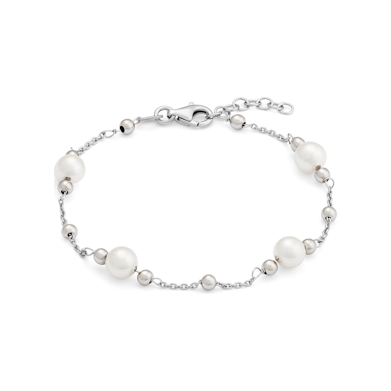 Verspielt, romantisch und durch und durch feminin betritt dieses Armband für Damen von FAVS die modische Bühne. Dem Zauber klassischer Perlen-Armbänder nachempfunden, punktet dieses zeitlose Design mit einem Mix aus Silber-Perlen und weißen Schmuckperlen, die von echten Süßwasserperlen* kaum zu unterscheiden sind. Das smarte Arrangement der unterschiedlich großen Deko-Elemente lockert dieses Modell gekonnt auf. Accessoires im selben Stil oder anderer Silberschmuck wären ideale Ergänzungen dafür.