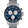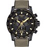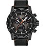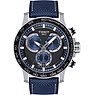 Schweizer Uhrmacherkunst mit einem ausgezeichneten Preis-Leistungsverhältnis: Tissot sei Dank! Handwerkskunst und Qualität, verbunden mit Hingabe für Leistung und Präzision, sind der tägliche Ansporn in der Manufaktur aus dem schweizerischen Le Locle. Schon seit 1853 entstehen hier durch innovative Technologien hochwertige Uhren in vollkommenen Designs. Die Tissot T-Sport Supersport Chrono ist die perfekte Uhr für Herren, die bei Stil und Qualität wissen, was sie wollen. Das Gehäuse aus Edelstahl mit Aluminium und das Textilband ergänzen sich zu einem sportiven Chronographen mit kraftvollem Charakter. Mit einem Gehäusedurchmesser von 45,5 mm und einer Gehäusedicke von 11,92 mm gehört diese Tissot zu den auffälligeren, massiveren Uhren, passt aber dennoch zu einer Vielzahl von Handgelenken. Der kühle Schimmer des Edelstahlgehäuses verleiht der Uhr einen hochwertigen Look, dazu ergänzt sich harmonisch die Lünette in Schwarz. Auf dem Ziffernblatt in Schwarz sorgen Markierungen für gute Ablesbarkeit, die Zeiger heben sich deutlich davon ab. Der Chronograph besitzt eine Datumsanzeige auf dem Ziffernblatt. Ein extrem hartes und kratzfestes Saphirglas sorgt für ungehinderte Sicht. Durch die Wasserdichte von 10 bar erlaubt die T-Sport Supersport Chrono auch Schwimmen und Baden ohne Reue. Das hochwertige, wartungsarme Eta-Quarzwerk garantiert jederzeit höchste Präzision. Ein farblicher Hingucker ist das Band aus Textil in Blau mit Dornschließe, durch das die Uhr sicher und bequem am Arm gehalten wird. Alles in allem eine Tissot, die nichts zu wünschen übrig lässt und auf lange Jahre hinaus zum geliebten Begleiter werden wird.