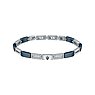 Complete your look: Mit diesem wertigen Armschmuck setzt du zu all deinen Outfits einen lässig-eleganten Akzent. Bei dem Schmuck aus Edelstahl fügen sich rechteckige Glieder in Silbergrau und Blau zu einem coolen Band zusammen. Einige Elemente sind offen, andere haben eine durchgehende, glänzende Fläche. Auf dem mittleren Viereck prangt das Logo von MASERATI: Der charakteristische Dreizack setzt einen weiteren blauen Akzent. Spannendes Detail: Die silbernen Glieder links und rechts davon sind zusätzlich mit weißen Farbsteinen verziert.
