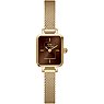 Ein Mineralglas bietet eine klare Sicht auf das Ziffernblatt und guten Schutz gegen alle Einflüsse, die bei normalem Gebrauch entstehen. Spritzwasser und Regen machen diesem Zeitmesser nichts aus: Er ist bis zu 3 Bar wasserdicht. Die Faltschließe des Armbands ist einfach zu handhaben und sorgt für sicheren Halt. Mehr Variabilität geht nicht: Durch das leicht austauschbare Armband lässt sich der Look der Uhr ganz einfach anpassen. Wer seinem Look eine stilvolle Note verleihen möchte, macht mit der Daniel Wellington Quadro Mini Evergold Damenuhr definitiv alles richtig!