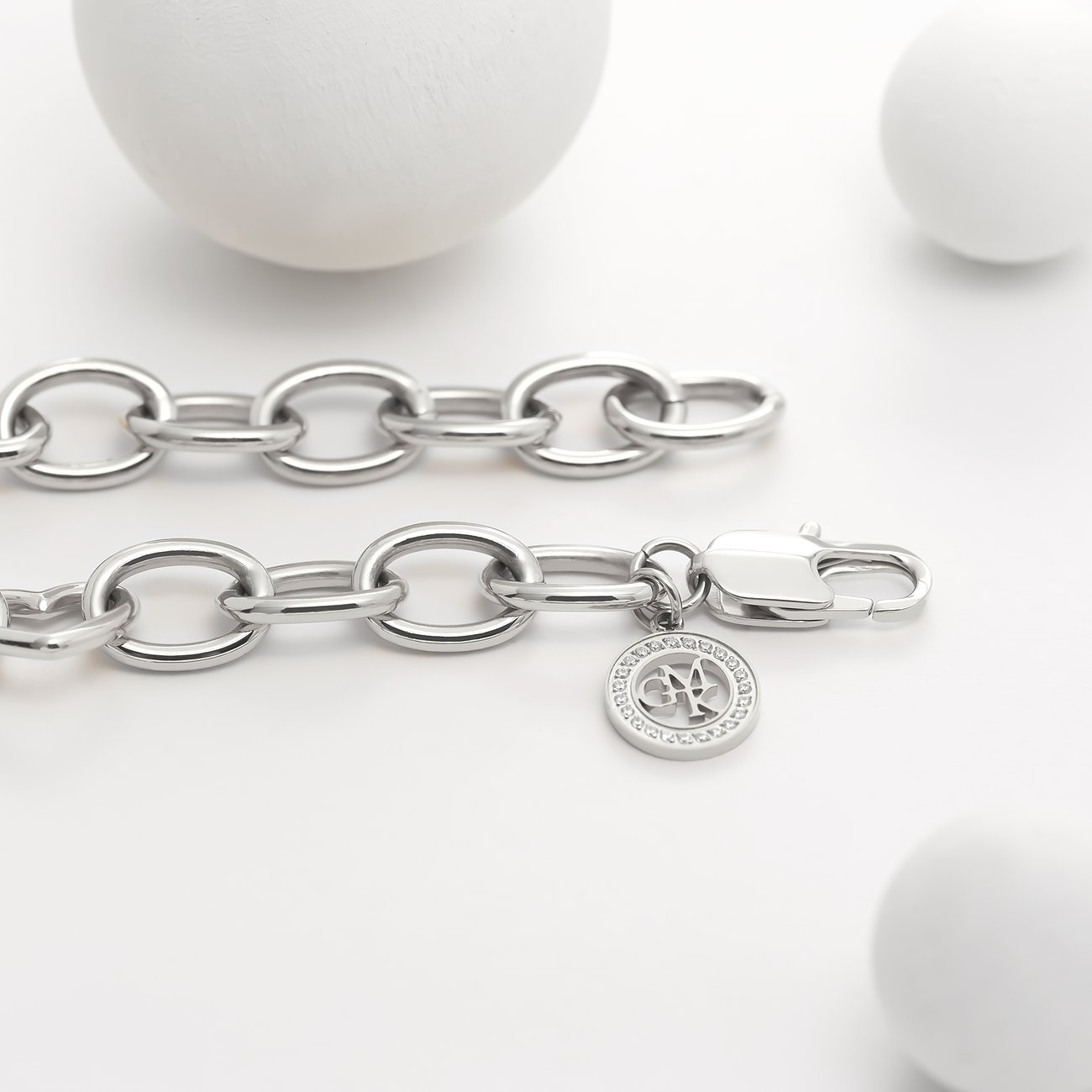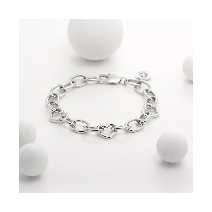 Unverzichtbares Essential für dein Schmuck-Repertoire: Dieses massiv gestaltete, silberne Armband von Top-Designer Guido Maria Kretschmer besteht aus robustem Edelstahl. Ovale Glieder im Stil einer klassischen Ankerkette nehmen 3 offene Herzanhänger in ihre Mitte. An welcher Stelle du den Karabinerverschluss einhakst, entscheidest du frei. Solo oder zusammen mit filigranem Armschmuck – finde deine liebste Tragevariante!