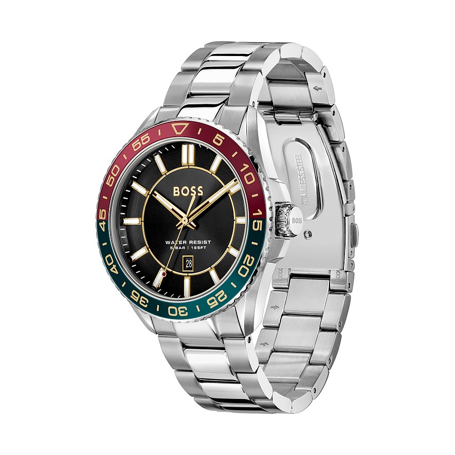 Boss steht seit Jahren für Qualität und Tradition - und die Uhren sind der perfekte Ausdruck für das, was die Marke ausmacht: modernes Design, bewährte Zuverlässigkeit, Eleganz und ein Sinn für die Bedeutung von Tradition. Ein sportlich-eleganter Klassiker ist diese Herrenuhr mit Edelstahl-Gehäuse an einem unkomplizierten Edelstahl-Band. Das Ziffernblatt in Schwarz und die zweifarbige Lünette ergänzen das Gehäuse und Armband in Silber der Boss Runner 3H ideal.
