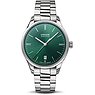 Durch den Gehäusedurchmesser von 39 mm ist die Viro an schmalen und mittleren Handgelenken gleichermaßen gut zu tragen. Gekonnt fügt sich das grüne Zifferblatt mit Markierungen in das harmonische Gesamtbild ein. Der Sonnenschliff des Zifferblatts unterstreicht die luxuriöse Ästhetik und sorgt für eine hohe optische Wandlungsfähigkeit in Abhängigkeit vom Lichteinfall. Durch die Leuchtzeiger ist das Ablesen der Uhrzeit auch bei schlechten Lichtverhältnissen leicht. Diese Uhr ist nicht nur elegant, sondern auch praktisch: Sie verrät neben der Uhrzeit auch das Datum. Perfektioniert wird das Gesicht der Uhr durch die silberne Lünette. Ein strapazierfähiges Saphirglas übernimmt den Schutz des Zifferblatts. Dieses synthetische, äußerst hochwertige Material ist so gut wie nicht zu zerkratzen und unempfindlich gegen Schläge und Stöße.
