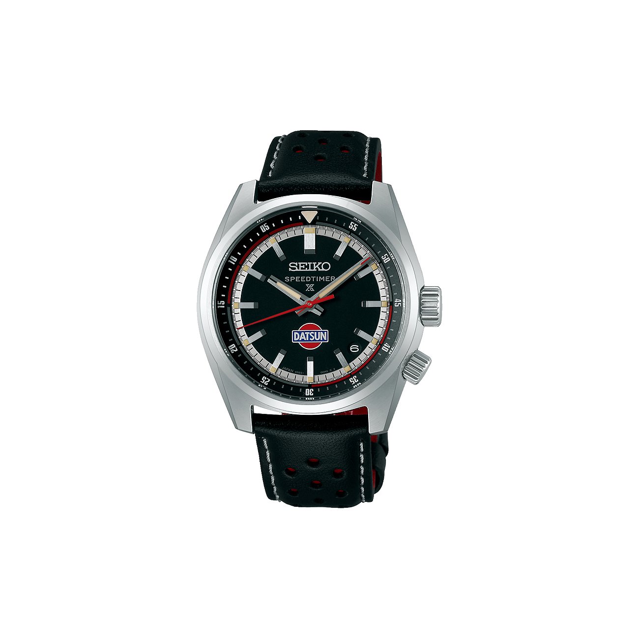 Die Seiko Prospex Speedtimer Automatic Datsun Limited Edition ist eine Klassikuhr für alle, die bei Stil und Qualität keine Kompromisse machen wollen. Das Edelstahlgehäuse mit Lederband bietet einen sportlichen Look vom Office bis in die Freizeit. Diese Seiko hat ein Gehäuse mit einem Durchmesser von 39,5 mm und einer Gehäusedicke von 12 mm - trotz dieser eher auffälligen Maße passt sie dennoch zu vielen Handgelenken.