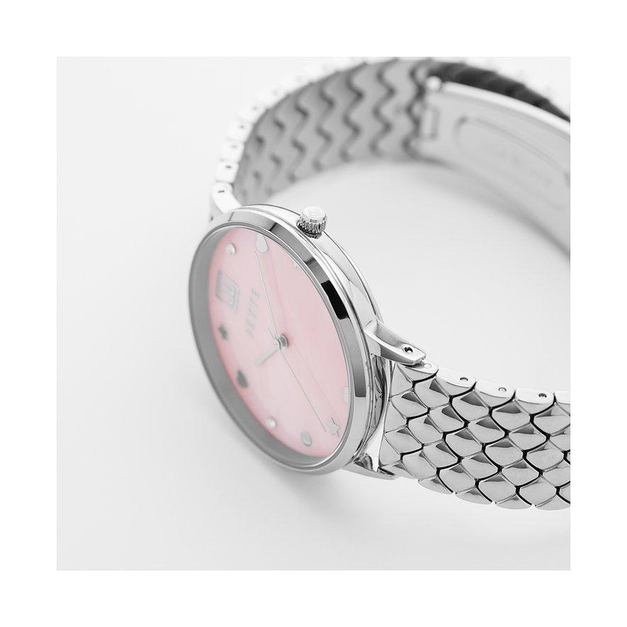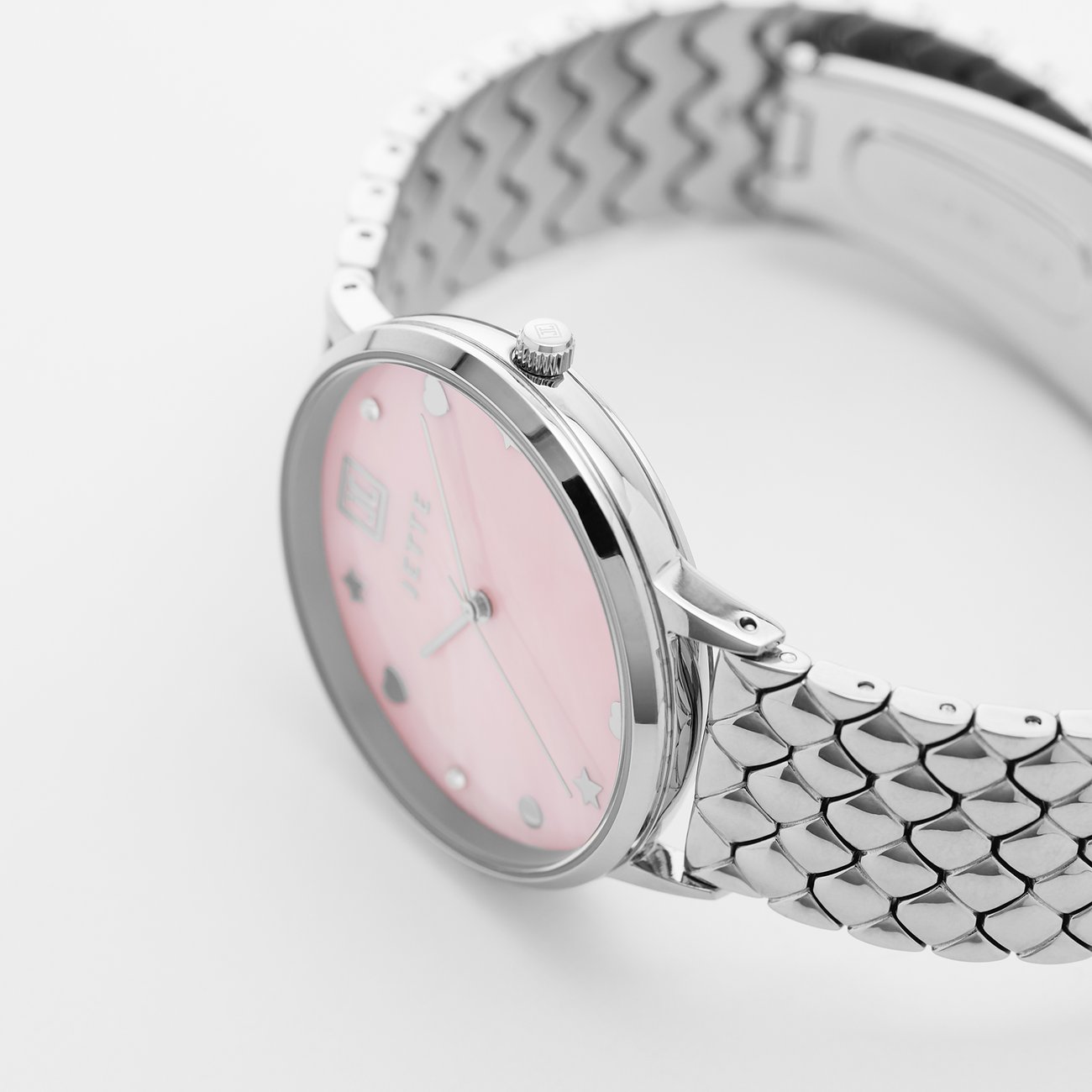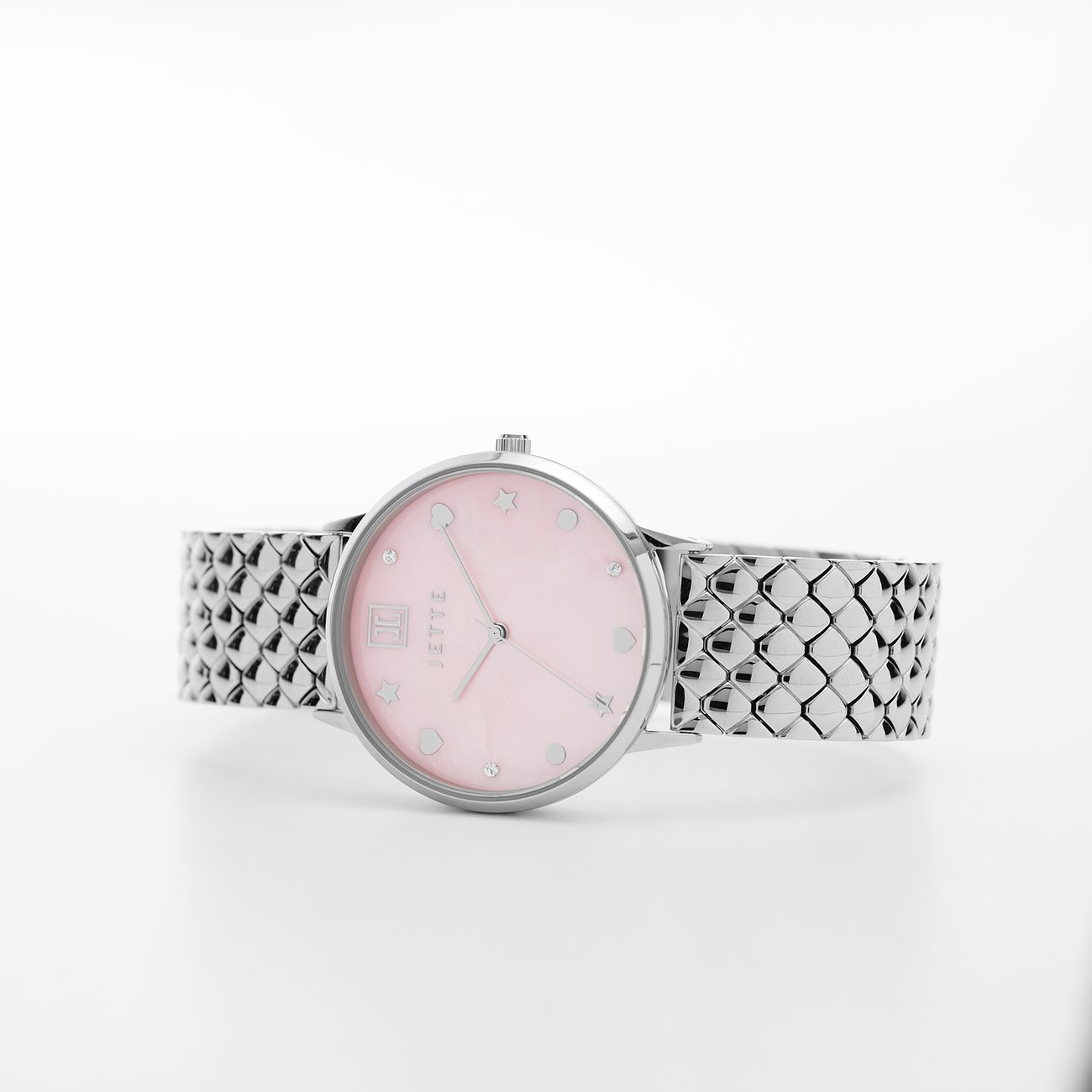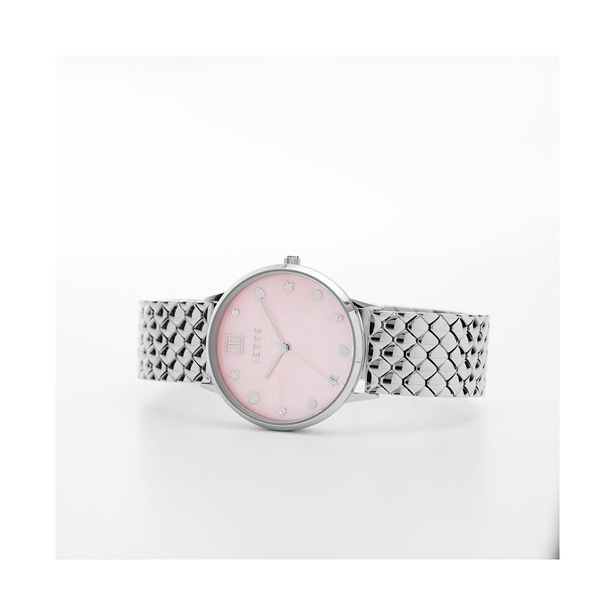 Diese sportlich-elegante Uhr am gleichermaßen schicken wie robusten Edelstahl-Band ist die perfekte Wahl für jede Frau, die auf der Suche nach einem zeitlosen Klassiker ist. Das pinke Ziffernblatt der JETTE Snake setzt optisch einen besonderen Akzent, während das Gehäuse, das Armband und die Lünette einheitlich in Silber gehalten sind.