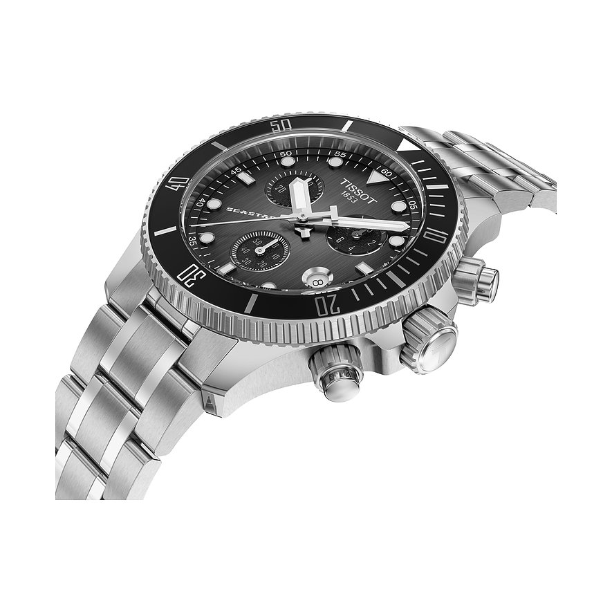 Für alle, die in Sachen Stil und Qualität keine Abstriche machen möchten, ist die Tissot T-Sport Seastar die optimale Wahl. Dieser sportive Chronograph kombiniert ein robustes Edelstahl-Gehäuse mit einem sportlichen Edelstahlband. Bei einem Gehäusedurchmesser von 38 mm und einer Gehäusehöhe von 12,95 mm ist diese Uhr zwar auffälliger, dicker, aber dennoch passt sie an eine Vielzahl von Handgelenken.