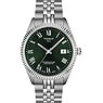 Durch den Gehäusedurchmesser von 39 mm ist die T-Classic Ballade an schmalen und mittleren Handgelenken gleichermaßen gut zu tragen. Das grüne Zifferblatt mit römischen Ziffern fügt sich harmonisch in das Gesamtdesign ein. Diese Uhr ist nicht nur elegant, sondern auch praktisch: Neben der Uhrzeit wird auch das Datum angezeigt. Für den Schutz des Zifferblattes wurde der König der Uhrengläser verwendet: Saphirglas. Dieses synthetische Material ist so gut wie nicht zu zerkratzen und äußerst strapazierfähig. Saphirglas ist außerdem quasi immun gegen Stöße und Schläge.
