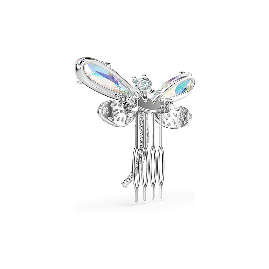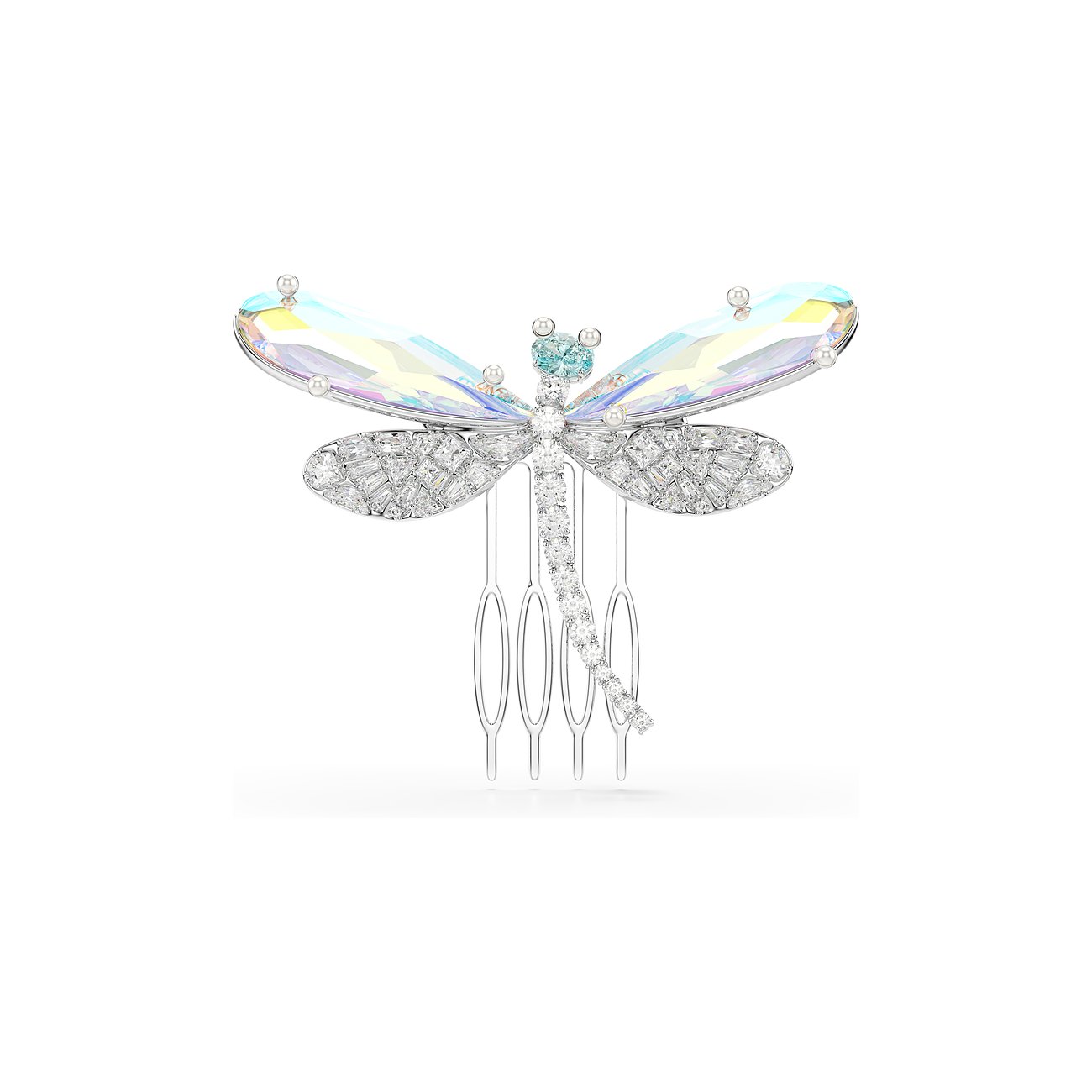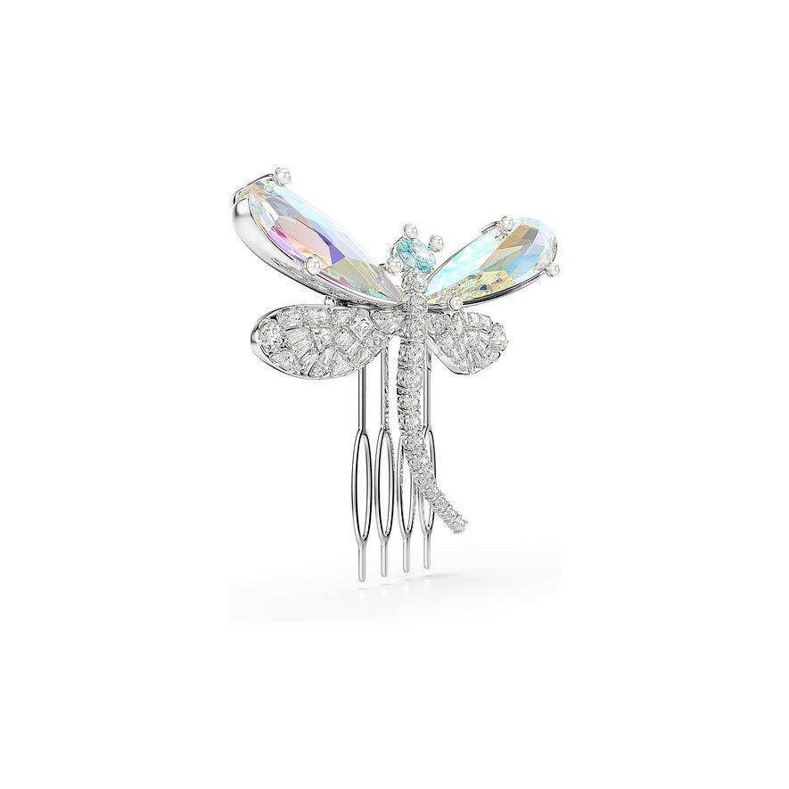 Entdecke dieses faszinierende Schmuckstück von Swarovski, das speziell für Damen kreiert wurde. Gefertigt aus rhodiniertem Metall in strahlendem Silber, besticht dieses meisterhafte Accessoire durch seine unglaubliche Vielseitigkeit. Die filigrane Libelle ist mit funkelnden Swarovski-Kristallen besetzt, wobei die großen oberen Flügel in faszinierenden, grünlich irisierenden Nuancen schimmern. Der detailreiche Körper und die unteren Flügel sind mit klaren Steinen verziert, die bei jedem Lichtstrahl ein wahres Feuerwerk an Reflexionen entfachen.
