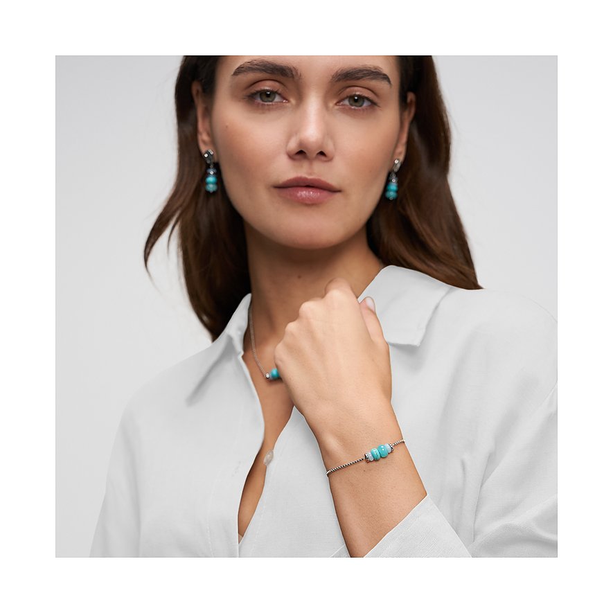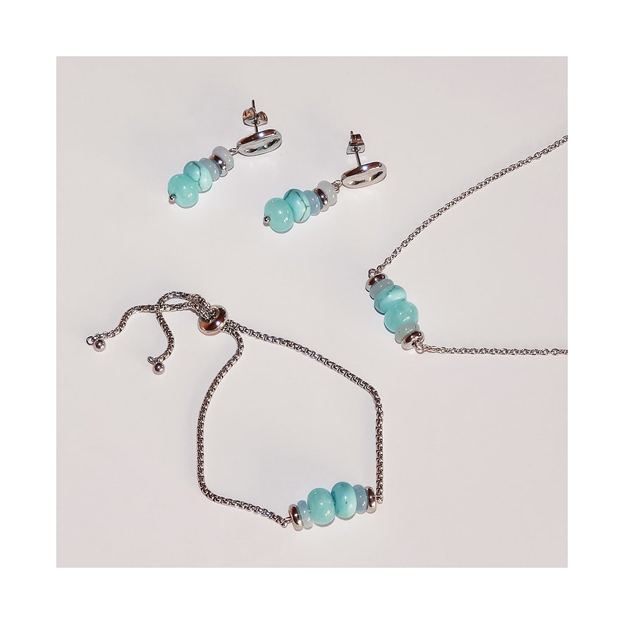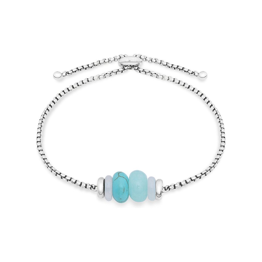 Mit diesem wunderschönen Damenarmband von Tamaris holst du dir ein echtes Urlaubsgefühl in deinen Alltag. Das Schmuckstück ist perfekt für Frauen, die frische Farben und modernes Design lieben. Gefertigt aus robustem Edelstahl, präsentiert sich das Armband in strahlendem Silber. Das absolute Highlight sind die echten Farbsteine in Türkis und Aquamarinblau, die als kugelförmige Elemente in die feine Kette eingearbeitet sind. Der clevere Zugverschluss ermöglicht es dir, die Länge stufenlos an dein Handgelenk anzupassen.